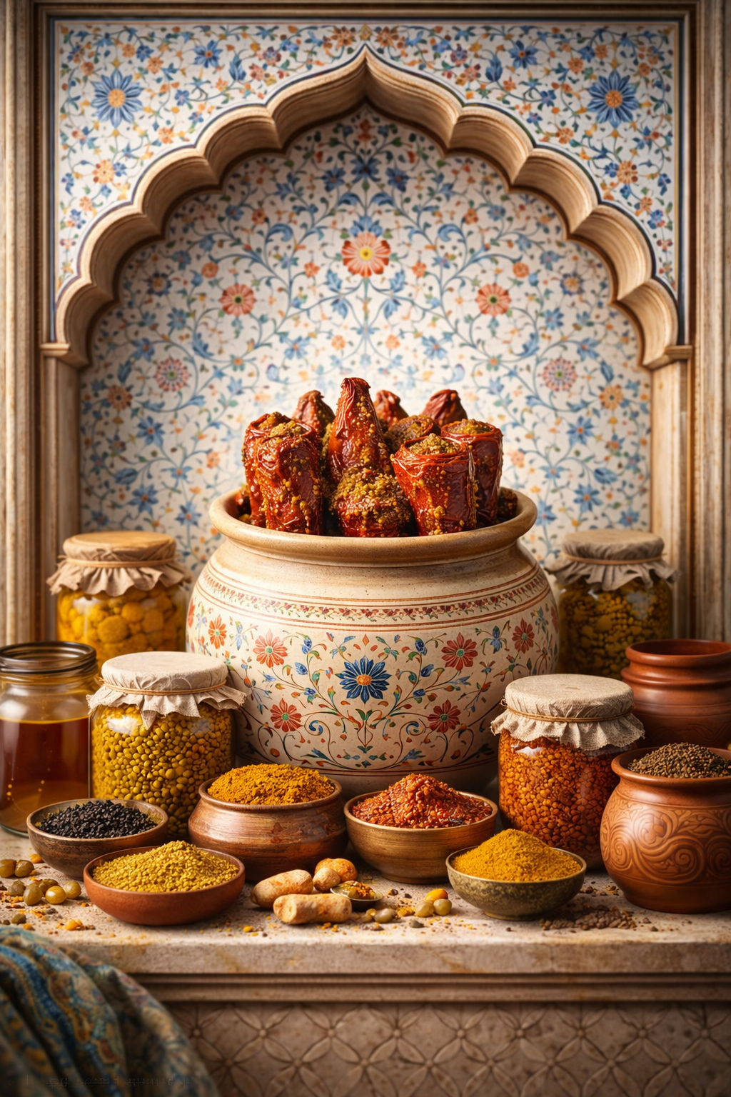 Inside the kitchen, the rhythmic sound of a stone pestle grinding coriander, fennel, and mustard seeds fills the air. Every spice is blended by hand, infused with pure, cold-pressed mustard oil, and most importantly, prepared with a mother's silent blessings.